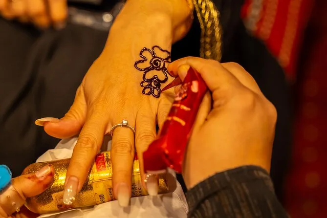 Le camp sentait la viande grillée et une douceur que je n’arrivais pas à identifier. Les artistes du henné nous ont invités à les rejoindre ; j’ai eu une petite fleur sur le poignet, encore visible aujourd’hui. Le buffet était plus copieux que prévu — currys, kebabs, salades — et personne ne se privait pour les secondes ou troisièmes assiettes (moi la première). On s’est installés autour de tables basses pendant que des danseuses tournaient dans leurs jupes colorées et qu’un spectacle de feu faisait battre mon cœur plus fort que les tambours. À un moment, je me suis juste laissé aller, le regard perdu dans les étoiles au-dessus du désert, me sentant tout petit mais étrangement apaisé. C’est difficile à décrire si on n’a pas vécu ça soi-même.