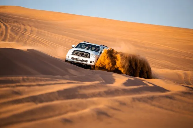 Votre soirée comprend la prise en charge confortable à l’hôtel en véhicule climatisé, une balade en quad de 25 minutes sur les dunes rouges de Lahbab, un dune bashing palpitant avec des conducteurs expérimentés, du sandboard si vous le souhaitez, une courte balade à dos de chameau au camp, des sessions de henné pour tester cet art, ainsi que des boissons non alcoolisées à volonté et un dîner BBQ complet (avec options végétariennes) avant de retourner à votre hôtel à la nuit tombée.