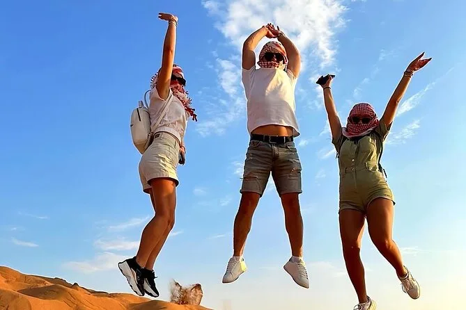 Je vais être honnête — j’ai failli rater le ramassage parce que je ne retrouvais plus mes lunettes de soleil (classique). Le chauffeur m’a juste fait un sourire et m’a fait signe de monter, comme s’il avait l’habitude. Ça a donné le ton : rien de guindé, juste des gens impatients de découvrir le désert. Quand on a enfin roulé dans les dunes rouges de Lahbab en 4x4, je me suis demandé « mais c’est vraiment réel ? » Le sable était partout — j’avais les mains pleines de grains après avoir essayé de me stabiliser pendant le dune bashing. Notre guide, Imran, montrait les traces dans le sable et rigolait quand quelqu’un demandait s’il y avait des serpents (il a dit que seuls les touristes se perdent ici).