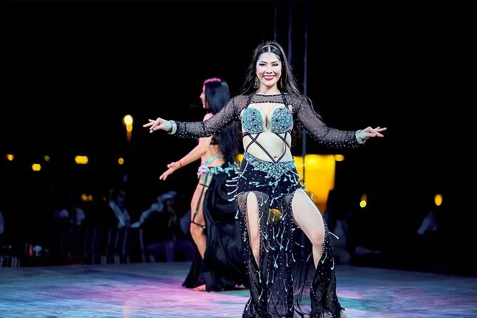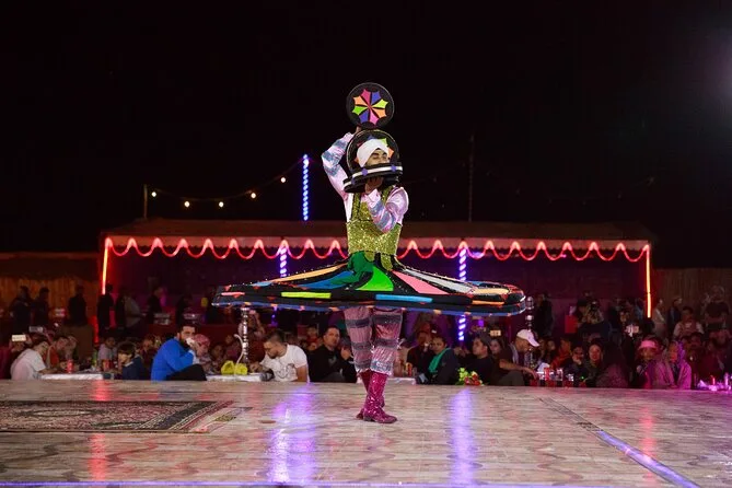 Quand la nuit est tombée, la musique a commencé et les artistes sont montés sur scène — danse du ventre, jonglage de feu, et un danseur de Tanoura tournoyant qui a coupé la parole à tout le monde un instant. Le buffet s’est ouvert avec plein de viandes grillées, des plats végétariens, des salades fraîches et des douceurs sucrées. J’y suis retourné pour une deuxième assiette. Au moment de repartir, j’avais l’impression d’avoir vécu une semaine d’aventures en une seule soirée. Le retour a été calme — la plupart d’entre nous se sont endormis sous le ronronnement apaisant du 4x4.