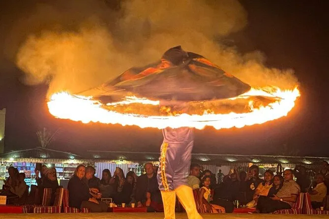Votre excursion comprend la prise en charge à l’hôtel et le retour en 4x4 confortable, 30 minutes de quad avec tout l’équipement de sécurité, dune bashing avec un chauffeur expert, sandboard, balade à dos de chameau, tatouage au henné, chicha au camp, spectacles de danse live (feu et danse du ventre), eau et boissons sans alcool à volonté, douceurs arabes et fruits, ainsi qu’un grand buffet BBQ avec options végétariennes. N’oubliez que votre meilleure arme, c’est votre envie d’aventure !