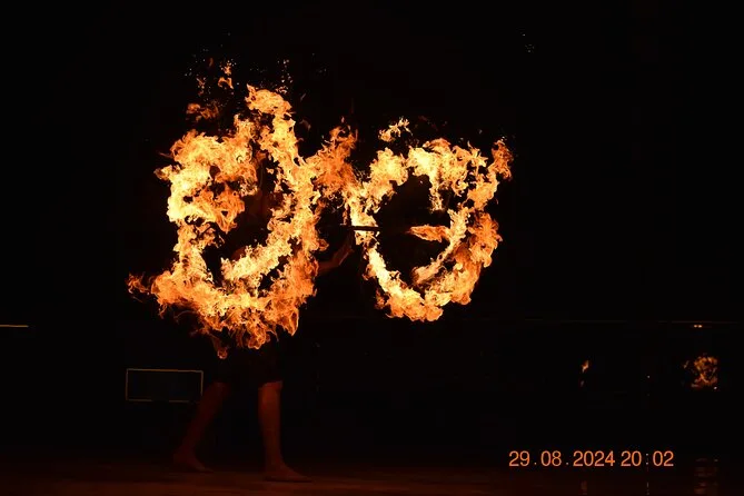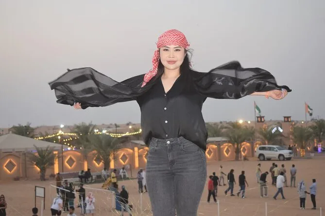 Le camp avait une ambiance différente — lanternes qui vacillent, petits groupes qui papotent. Les chameaux attendaient non loin, mâchonnant tranquillement ; je jure qu’un d’eux m’a fait un clin d’œil. La balade était courte mais presque hypnotique, avec ce balancement lent et l’odeur du thé qui infusait pas loin. Le dîner, c’était un barbecue fumé et des dattes sucrées — pas sophistiqué, mais parfait après toute cette adrénaline. Cinq spectacles vivants ont commencé juste au crépuscule ; je n’ai pas tout compris, mais ce n’est pas nécessaire quand tout le monde tape dans les mains ou regarde le feu tourner dans la nuit. Sur le chemin du retour, quelqu’un s’est endormi avec du sable encore collé au bras. Cette vue des étoiles au-dessus des dunes… ça reste gravé.
