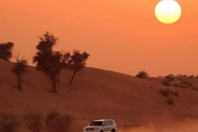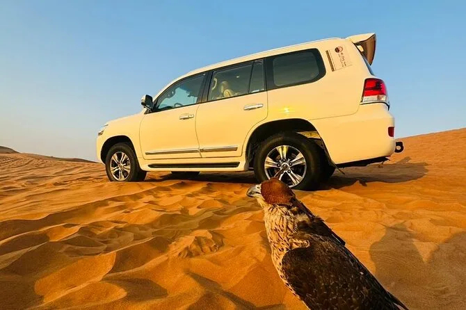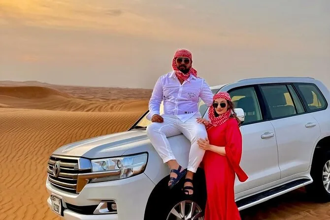 Votre journée inclut la prise en charge à l’hôtel de Dubai vers le désert de Lehbab pour du quad et dune bashing avec un guide expert ; puis du sandboard avant de rejoindre le camp pour une courte balade à dos de chameau. Au camp, vous profiterez de boissons non alcoolisées, eau, thé ou café, tout en assistant à cinq spectacles vivants et en dégustant un dîner buffet BBQ avant de retourner à votre hôtel en soirée.