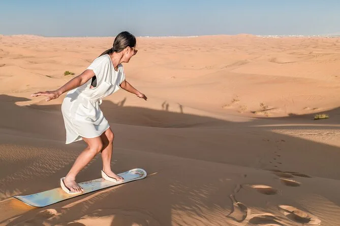 Ce safari matinal dans le désert de Dubaï combine sensations fortes en 4x4, balade paisible à dos de chameau et petit-déjeuner sous un ciel ouvert. Essayez le sandboard ou posez en tenue locale—votre guide s’occupe de tout pour que vous profitiez pleinement de la sérénité du désert au lever du jour.
