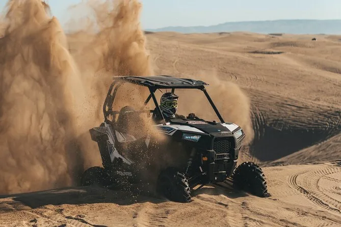 Votre expérience comprend la prise en charge et le retour à l’hôtel en 4x4 climatisé, ainsi que toutes les activités principales : sensations fortes en 4x4 à travers les dunes, balades à dos de chameau avec des guides sympathiques, et sandboard pour les plus aventuriers. Le petit-déjeuner est servi en plein air avec jus, eau, thé et café—tout est organisé par votre guide pour que vous profitiez pleinement de chaque instant dans le désert.