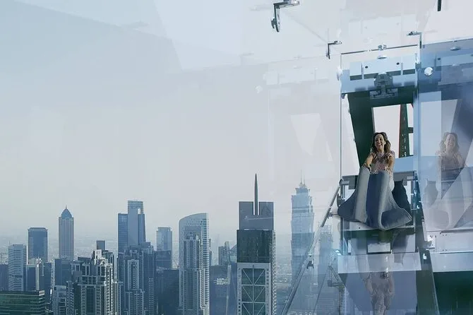 Votre billet inclut l’accès à l’observatoire Sky Views et une descente sur le toboggan en verre. Vous pourrez aussi vous promener entre les tours pendant environ 30 minutes — parfait pour des photos ou simplement profiter de la vue sur la ville.