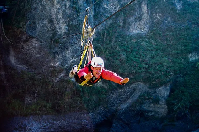 Vivez la sensation de survoler un vrai canyon à Baños — choisissez votre style de vol et partagez même l’aventure avec un ami. C’est sûr, facile d’accès, et l’adrénaline reste gravée longtemps après.