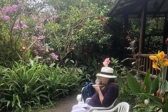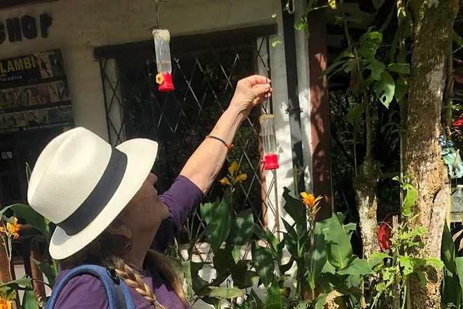 Après le déjeuner (nous avons pris des empanadas dans un petit café en bord de route appelé « El Sol »), nous avons pris la route vers la Réserve Alambi. L’air a changé dès que nous avons quitté Quito—plus frais, plus humide, avec cette odeur de terre typique des forêts de nuages. À Alambi, les colibris virevoltaient partout—de petites éclairs verts et violets zébraient les mangeoires. Nous avons fait une courte balade au milieu d’une végétation dense pendant que notre hôte nous montrait des orchidées et expliquait comment elles protègent ce coin de forêt. On n’entendait rien d’autre que le chant des oiseaux et, si on tendait bien l’oreille, le murmure lointain d’une rivière. En fin d’après-midi, nous sommes retournés à Quito, fatigués mais heureux—et avec beaucoup trop de photos de colibris.