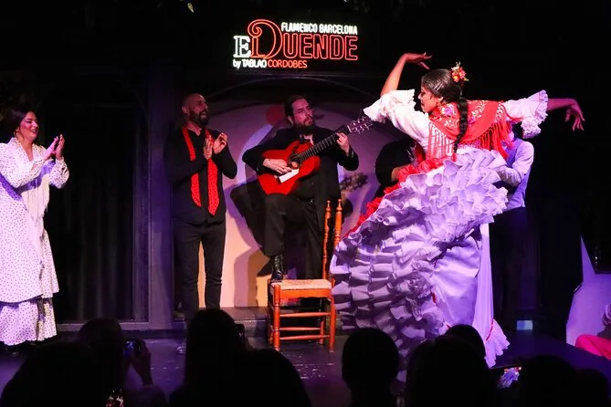 Plongez dans l’ambiance d’El Duende, près de La Rambla, pour un spectacle flamenco intime—assez près pour voir chaque geste, entendre chaque pas. Votre billet inclut une boisson (sangria, vin, bière ou soda) et une vraie connexion entre artistes et public. Attendez-vous à une émotion brute, aucune photo pendant la majeure partie du show, et un petit souffle de magie barcelonaise qui vous accompagne après la sortie.