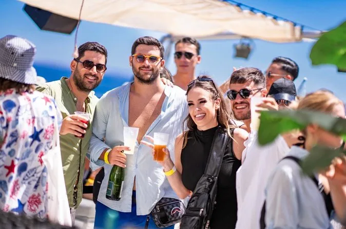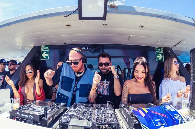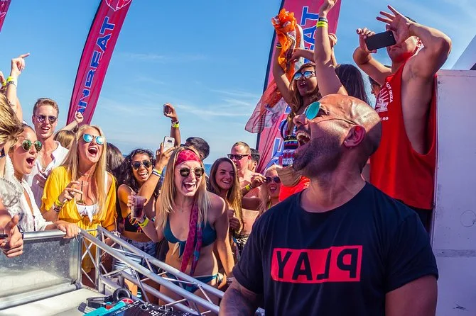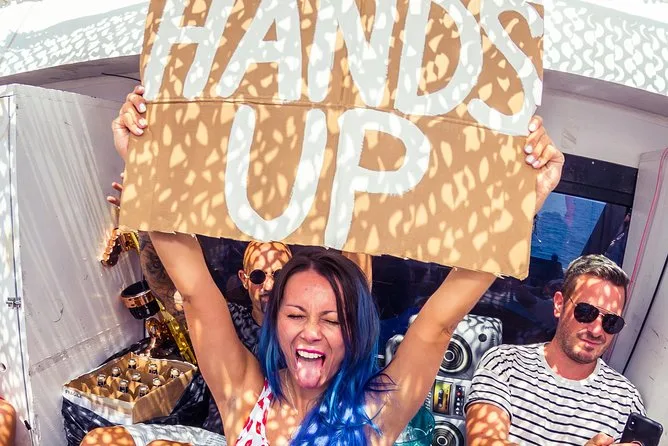 Montez à bord d’une boat party à Ibiza pleine d’énergie : musique à fond, boissons à volonté, rires sous le soleil. Naviguez devant les hôtels emblématiques, plongez dans une mer turquoise lors d’une pause baignade, profitez d’un repas à bord, puis dansez ou détendez-vous au son des DJ. Le staff assure une ambiance festive et relax. Vous repartirez avec du sel sur la peau et peut-être de nouveaux amis.