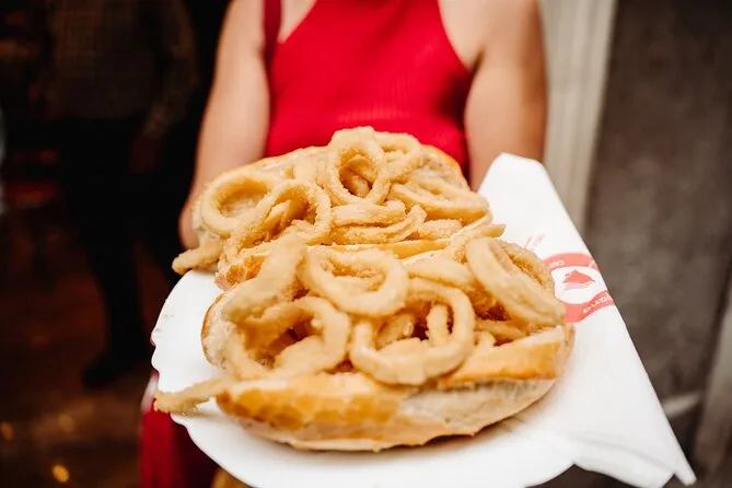 Votre journée comprend six arrêts dégustation uniques dans le centre de Madrid — avec plus de douze bouchées, des churros aux sandwichs de calamars — ainsi que trois boissons comme le vermouth et des vins espagnols. Un guide local anglophone accompagne votre petit groupe à pied entre marchés, boulangeries, bars et pâtisseries, en partageant les histoires derrière chaque saveur.