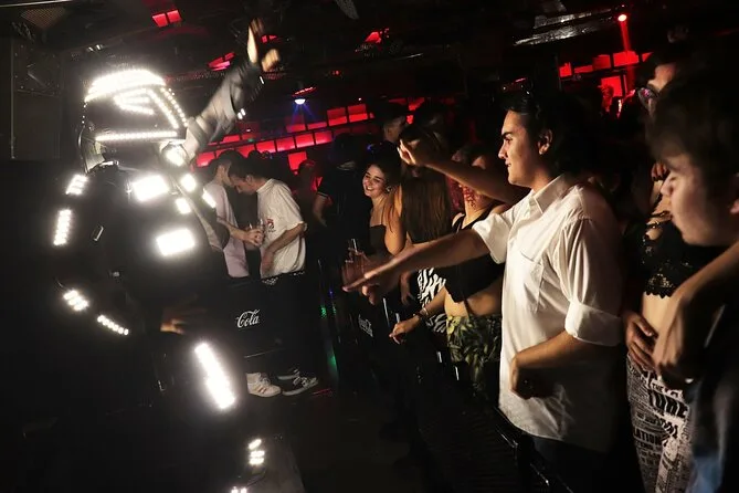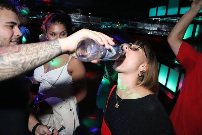 Un shot de bienvenue est offert dans chaque bar ; d’autres boissons peuvent bénéficier de réductions ou d’options open bar selon la soirée.