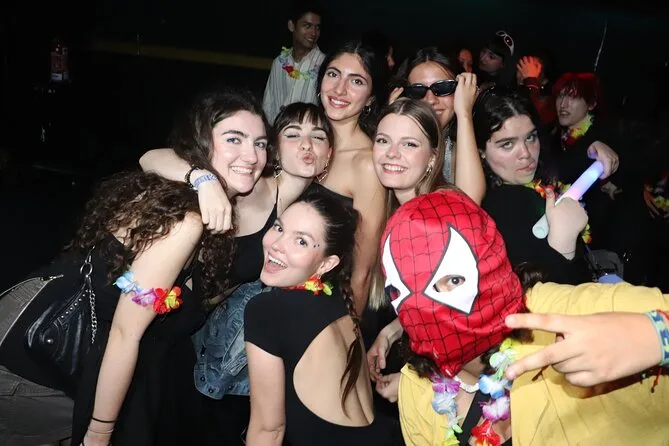 Votre soirée comprend l’entrée guidée dans quatre bars animés autour de Sol avec un shot de bienvenue à chaque arrêt (tequila, vodka ou rhum), des jeux festifs tout au long du parcours, les frais d’entrée couverts pour les bars et la boîte près de Gran Via — plus une photo souvenir pour ne pas oublier qui vous avez rencontré si votre téléphone rend l’âme avant le lever du jour.