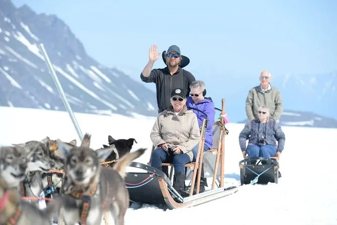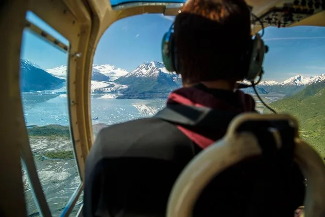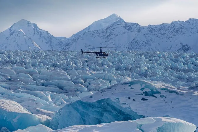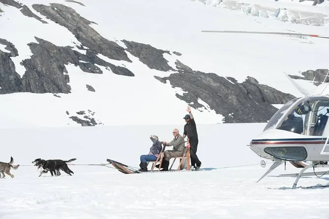 Votre journée comprend un vol aller-retour en hélicoptère au-dessus des glaciers depuis Anchorage, une pause d’une heure sur un glacier enneigé avec de vrais mushers et leurs chiens (dont environ 30 minutes de balade ou conduite), puis un atterrissage sur un glacier inférieur pour explorer les bassins de fonte avec votre guide. Des surbottes étanches sont fournies pour garder vos chaussures au sec — pensez à organiser votre transport jusqu’au point de départ, les transferts ne sont pas inclus.