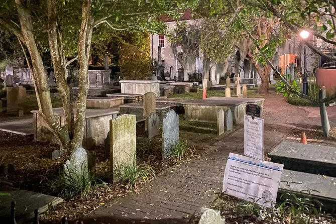 Votre soirée comprend une balade guidée de 90 minutes menée par un guide professionnel agréé, à travers donjons hantés, cimetières, églises comme St. Philips et St. Michael's, ruelles mystérieuses et pubs — avec des histoires authentiques des 350 ans d’histoire de Charleston, en petit groupe intime.