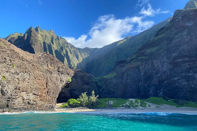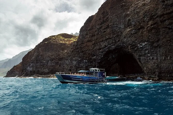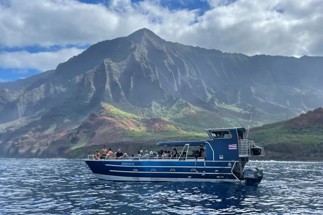 Votre journée commence à Waimea avec un équipage local hawaïen qui vous guide le long de la côte NaPali en catamaran. Tous les frais et le carburant sont inclus ; le matériel de snorkeling est fourni si les conditions le permettent. Le déjeuner (avec votre choix de sandwich), des snacks, de l’eau, des boissons non alcoolisées et l’assurance sont aussi inclus — sans oublier de nombreuses occasions de photos avant de revenir, salés et bronzés.