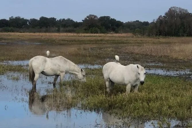 Votre journée comprend un commentaire en direct par votre capitaine local lors d’une balade en petit groupe (6 à 12 passagers) en airboat, avec des gilets de sauvetage pour la sécurité de tous. Toute la logistique est prise en charge, vous n’avez plus qu’à profiter de l’aventure dans les marais — accès fauteuil roulant disponible.