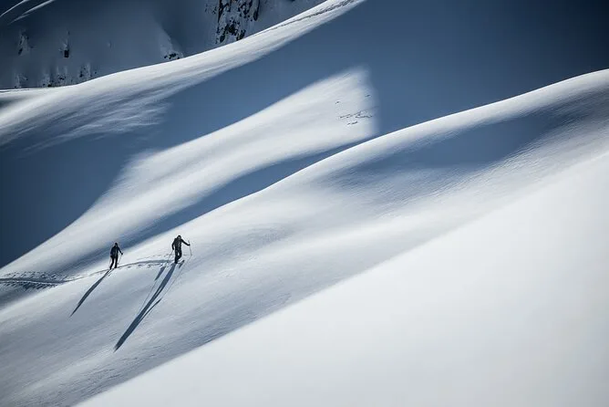 Vous laisserez la foule derrière vous et apprendrez de véritables techniques de ski de randonnée avec des professionnels locaux. Attendez-vous à un effort soutenu en montée — mais des descentes en poudreuse fraîche et des forêts silencieuses rendent l’expérience inoubliable.