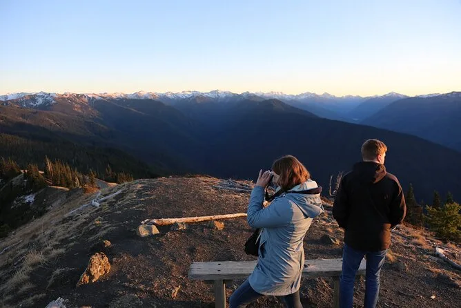 Hurricane Ridge, c’est l’endroit où s’ouvrent vraiment les panoramas grandioses sur les montagnes. Il y a une boutique de souvenirs (prenez un ou deux autocollants), un petit snack si vous avez encore faim, et parfois des cerfs s’aventurent jusqu’au parking. Nous avons eu la chance d’avoir un ciel dégagé — les montagnes Olympiques semblaient à portée de main.