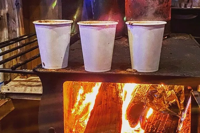 Retrouvez votre guide au lac Chena pour une vraie journée de pêche sur glace en Alaska — percez votre trou, réchauffez-vous dans des abris douillets avec des boissons chaudes, et grillez votre poisson pour le dîner. Tout le matériel est fourni et l’aide est là si vous débutez (comme moi). Ici, c’est moins la taille du poisson que les rires et les histoires partagés dans l’air frais de l’hiver.