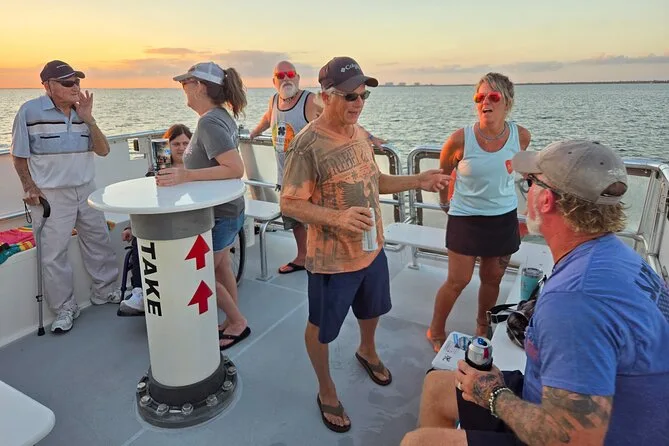 Votre soirée comprend des sodas ou de l’eau en bouteille offerts par une équipe locale sympathique à bord d’un bateau confortable avec beaucoup de places en plein air et des toilettes, avant le retour à Fort Myers Beach après le coucher du soleil.