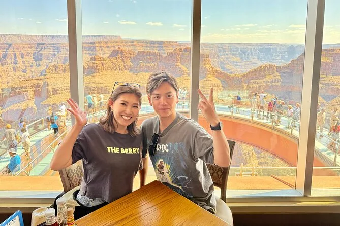 Votre journée comprend un transport privé avec prise en charge flexible depuis les hôtels de Las Vegas, toutes les entrées pour le Grand Canyon West Rim et Hoover Dam, l’accès au Skywalk à Eagle Point, de l’eau en bouteille tout au long du trajet, un déjeuner chaud gourmet avec vue sur le canyon au Sky View Restaurant, l’accès à la tyrolienne si disponible, ainsi qu’un bon d’achat de 10 $ par personne pour des souvenirs avant le retour confortable à Vegas.