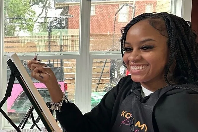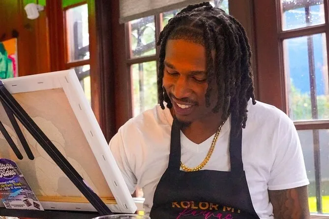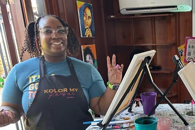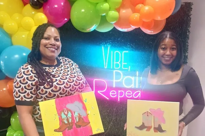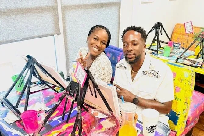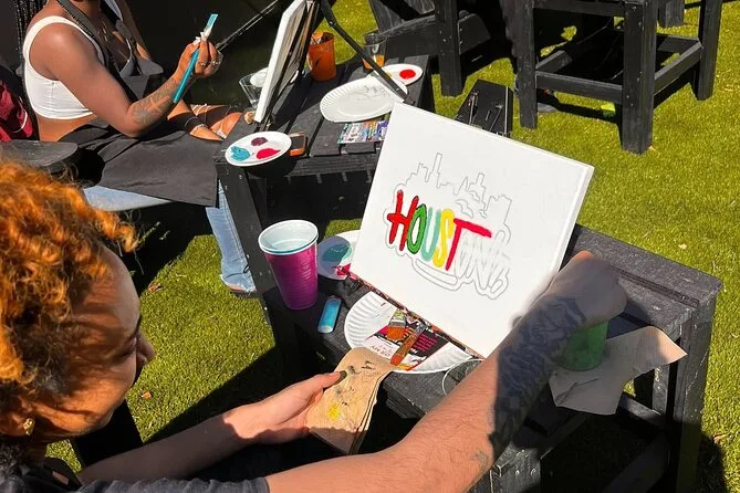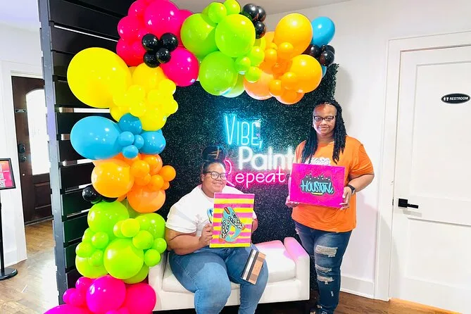 Vous entrez dans un studio bungalow cosy du 3rd Ward à Houston, peignez avec un prof dynamique sur du hip hop & R&B à fond, rigolez autour de vos boissons BYOB et repartez avec votre toile, même si elle sèche encore. L’ambiance est décontractée et chaleureuse ; la musique et les discussions resteront en tête longtemps après.