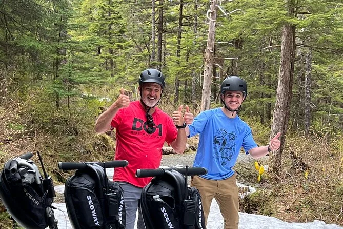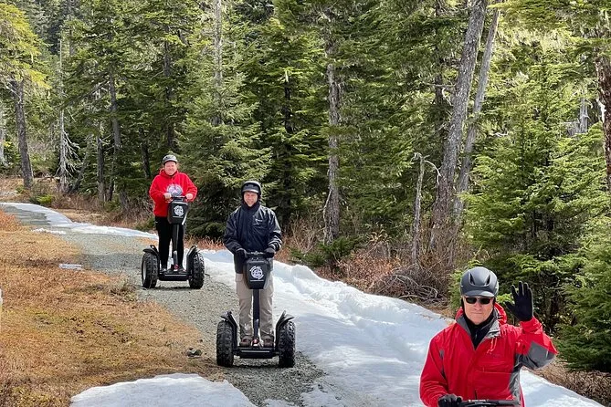Votre journée comprend la navette aller-retour de Juneau à Eaglecrest, des radios mains libres pour bien entendre le guide malgré les rires, de l’eau en bouteille, tous les frais et taxes, un casque pour la sécurité (et le style), l’utilisation d’un Segway tout-terrain X2, ainsi que des encas locaux partagés à Fish Creek avant la descente.