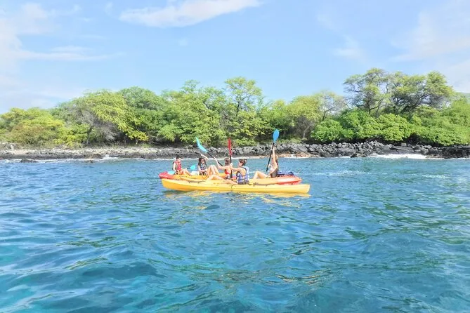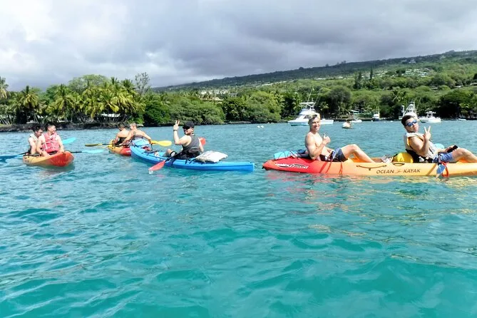 Votre journée comprend de l’eau en bouteille, tout le matériel de kayak et snorkeling (palmes adaptées à votre pointure), un accompagnement par des guides locaux professionnels formés aux premiers secours qui partagent histoires et culture de Kona, et une attention personnalisée en petit groupe tout au long de votre aventure sur la côte hawaïenne.