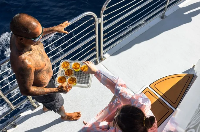 Votre après-midi comprend la location de matériel de snorkeling avec conseils d’experts si besoin (plus nouilles ou gilets pour flotter), toutes les boissons non alcoolisées ainsi que bière, vin et Mai Tais à volonté (avec pièce d’identité), un dîner buffet décontracté façon île avec tacos et dessert servis pieds nus sur le pont, le tout en naviguant devant cascades et falaises marines — guidé par un équipage local à bord d’un catamaran certifié au départ de Port Allen.