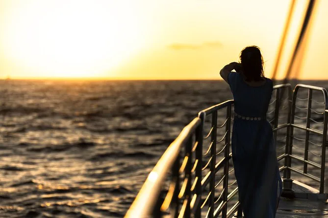Riez avec l’équipage local, faites du snorkeling le long de la côte Na Pali à Kauai si la mer le permet, observez dauphins et tortues depuis le pont du catamaran, puis dégustez un dîner pieds nus au coucher du soleil derrière des falaises sauvages et verdoyantes. Cette croisière au coucher du soleil mêle repas décontracté, open bar et ambiance chaleureuse — des souvenirs qui ressemblent plus à des histoires qu’à des photos.
