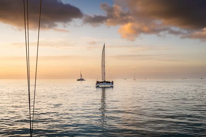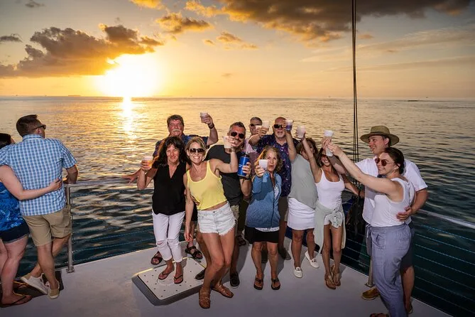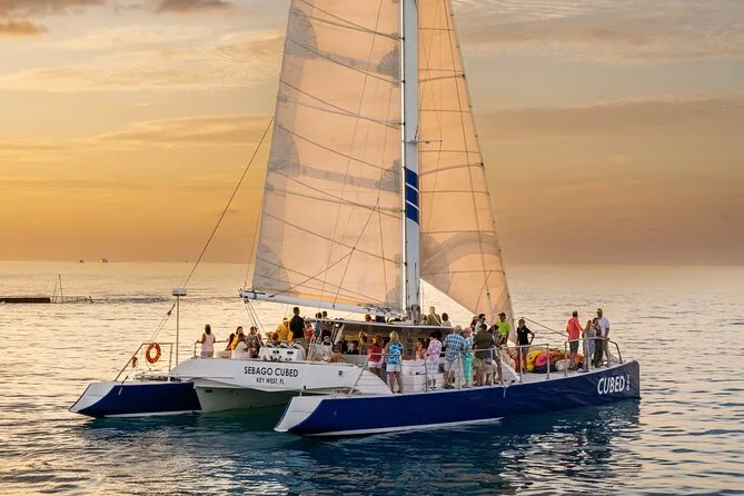Votre soirée commence à l’embarquement au port historique de Key West, où le capitaine et l’équipage vous accueillent à bord d’un catamaran spacieux de 18 mètres. Toutes les boissons — bière, vin, Champagne, sangria, boissons sans alcool et eau filtrée — sont offertes pendant cette navigation de 1h30, le temps d’admirer ces fameux couchers de soleil insulaires avant le retour à terre.