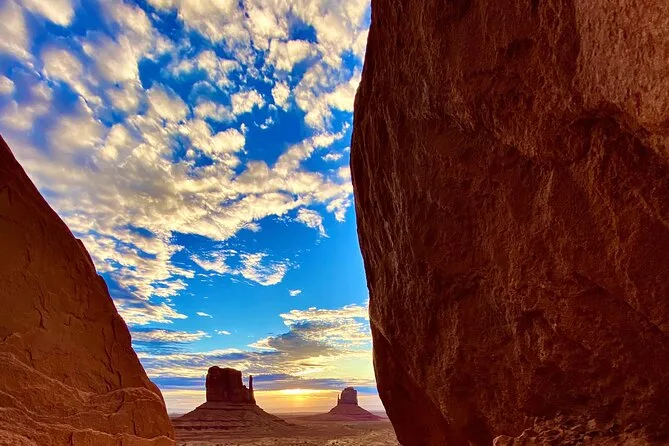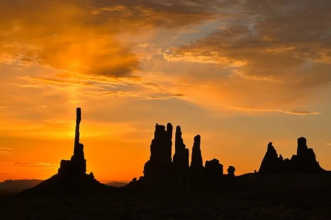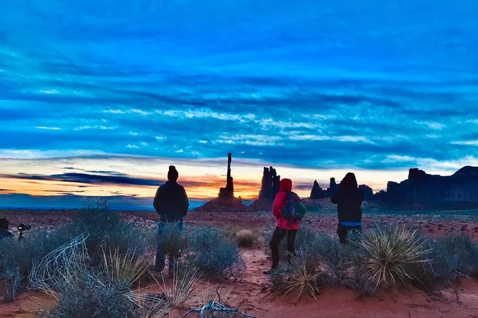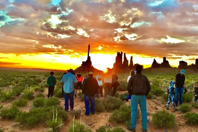 Vivez le lever du soleil sous Totem Pole à Monument Valley avec un guide Navajo local qui partage des histoires authentiques. Écoutez la flûte live sous Big Hogan Arch, découvrez des pétroglyphes anciens et partagez des rires en explorant John Ford’s Point, le tout avant que la majorité ait pris son petit-déjeuner.