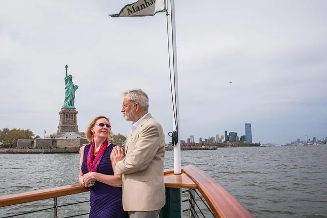 Votre billet inclut une croisière de 90 minutes dans le port de New York à bord d’un yacht vintage avec options de sièges en plein air ou en cabine vitrée ; profitez d’une boisson offerte en admirant la skyline de Manhattan, Ellis Island, et en contournant la Statue de la Liberté avant de revenir à quai.