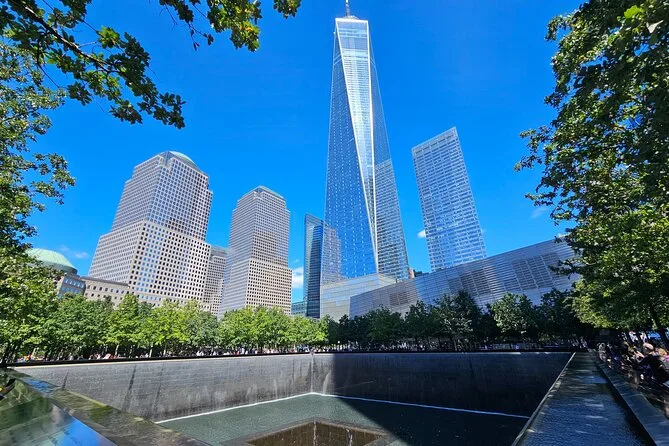 Si vous choisissez l’option guidée complète, votre guide vous emmènera aux bassins du Mémorial après Ellis Island.