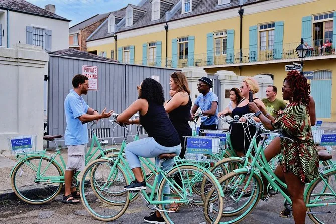 Votre journée comprend l’usage d’un vélo et d’un casque pour chaque participant, de l’eau en bouteille pour rester au frais, les conseils d’un guide local passionné qui partage ses histoires personnelles pendant que vous explorez cinq quartiers à vélo — avec des arrêts à Jackson Square et au cimetière St. Roch — le tout en petit groupe de 10 personnes maximum pour une balade plus agréable.