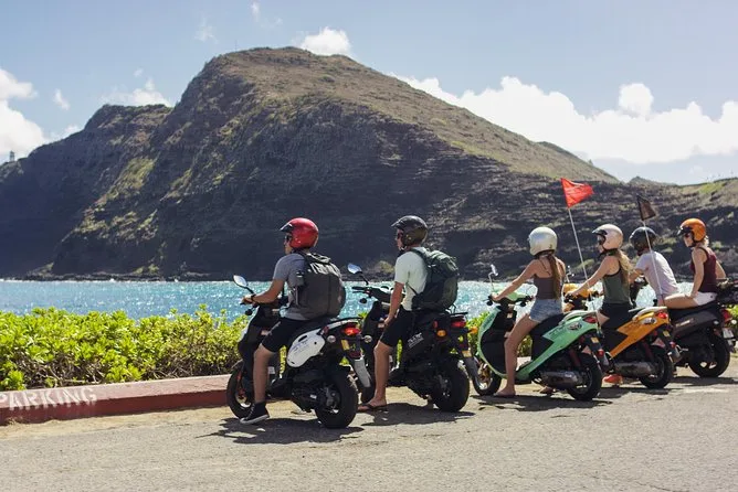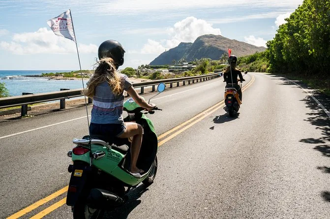 Parcourez la côte d’Oahu en scooter, entre plages, cascades et rues animées