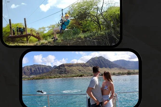 Votre journée comprend trois tyroliennes au Coral Crater Adventure Park avec tout le matériel de sécurité fourni, suivies d’une croisière d’observation des dauphins depuis la marina de Ko Olina où vous profiterez du matériel de snorkeling et d’un buffet hawaïen complet avant le retour à terre ; une prise en charge optionnelle depuis Waikiki facilite l’organisation si vous logez en ville.