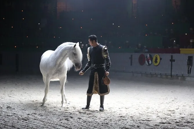 Votre soirée comprend l’entrée au château Medieval Times d’Orlando avec parking gratuit, un spectacle de deux heures mêlant joutes et fauconnerie dans l’arène, un festin médiéval en quatre plats sans couverts, ainsi que deux boissons non alcoolisées — le tout accessible en transports en commun et avec des places adaptées.