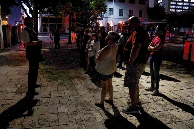 Partez à la découverte du vieux San Antonio avec un guide local au coucher du soleil, en écoutant des histoires de fantômes devant des lieux célèbres comme l’Alamo et le Palais du Gouverneur espagnol. Rires, frissons et peut-être quelques sueurs froides vous attendent, le tout à pied, pour profiter pleinement de l’ambiance nocturne de la ville.