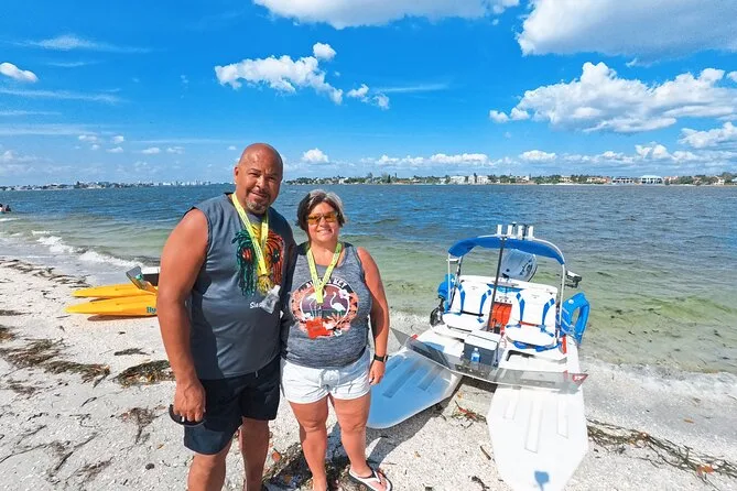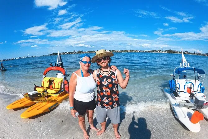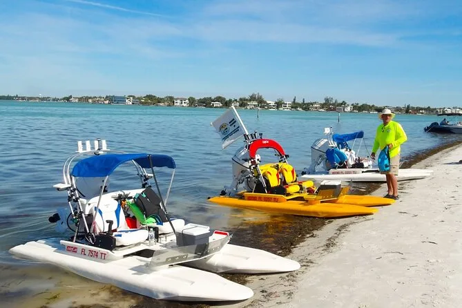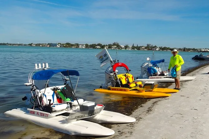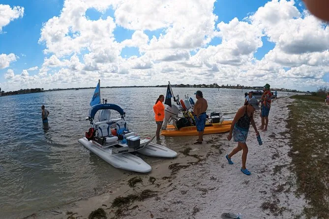 Votre sortie comprend l’utilisation d’un catamaran compact CraigCat 2 places guidé dans les eaux de Sarasota Bay, eau en bouteille et coupelles de fruits fraîches dans une glacière, tous les frais et taxes inclus, des sacs étanches pour garder vos affaires au sec, ainsi que les gilets de sauvetage fournis avant de prendre le large.