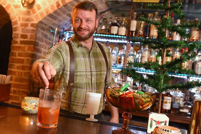 Votre soirée comprend la prise en charge au dépôt Old Town Trolley Tour, des histoires racontées pendant le trajet à travers des maisons et places historiques, l’entrée au American Prohibition Museum avec punch sans alcool et gourmandise dans son speakeasy, puis du temps libre pour flâner dans City Market décoré pour la saison avant le retour au point de départ.