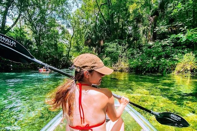 Votre journée comprend l’utilisation de kayaks tandem transparents avec pagaies et sièges, ainsi que des sacs étanches pour vos affaires. Tout l’équipement de sécurité — gilets de sauvetage et sifflets — est fourni pour que vous profitiez pleinement des eaux riches en faune de Silver Springs en toute sérénité.