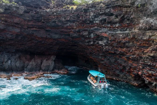 Vous partirez loin des foules de Kona pour plonger dans des eaux sauvages, faire du snorkeling à Kealakekua Bay et explorer des grottes marines accessibles uniquement en bateau. Avec des guides locaux qui partagent leurs histoires et un déjeuner inclus, vous nagerez avec des poissons tropicaux et peut-être apercevrez dauphins ou tortues — sans oublier un moment sur une plage de sable noir cachée que peu de visiteurs connaissent.