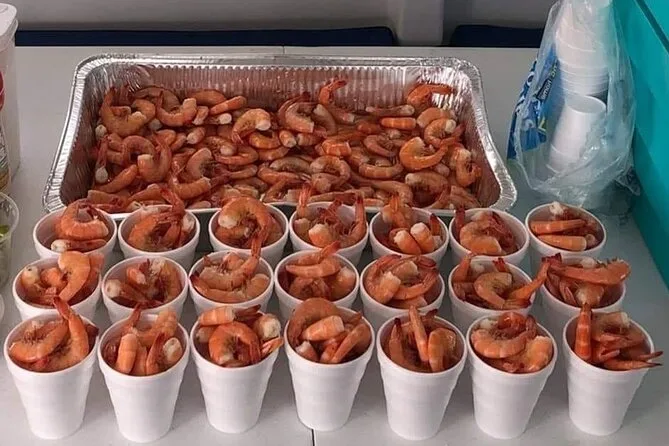 Votre journée commence avec café et donuts pour bien démarrer, suivis d’un petit cocktail de crevettes du golfe servi à bord pendant que vous passez devant chalutiers et chantiers navals. Vous pouvez aussi apporter votre glacière avec boissons ou snacks (évitez juste le verre). Des guides locaux partagent leurs histoires tout au long du trajet, et une assistance en fauteuil roulant est disponible avant l’embarquement.