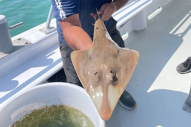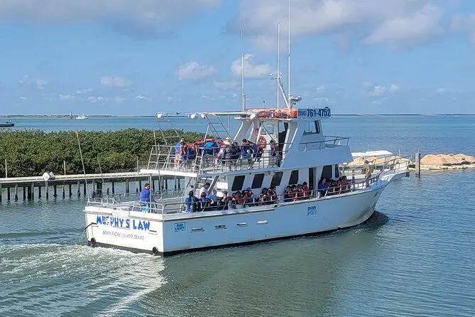 Votre journée comprend une sortie guidée à bord du Murphy’s Law avec commentaires en direct par des locaux qui connaissent bien ces eaux ; des activités éco interactives comme l’observation de la faune marine remontée dans des filets spéciaux (tous relâchés ensuite) ; un accès facile aux fauteuils roulants ; et de nombreuses occasions d’observer dauphins, oiseaux, Boca Chica Beach, le site de lancement Space X au loin, ainsi que les bateaux de crevettes rassemblés à l’entrée du chenal avant le retour à terre.