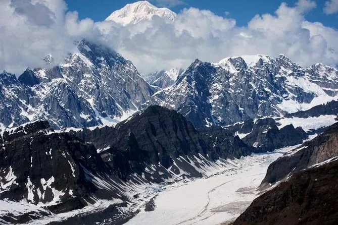 Vous verrez le glacier Ruth, le glacier Tokositna et les glaciers suspendus près du Mont Hunter.