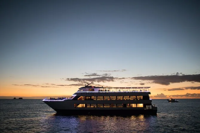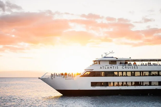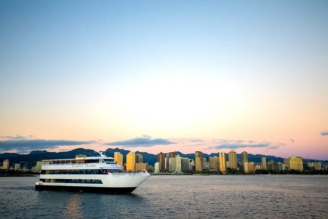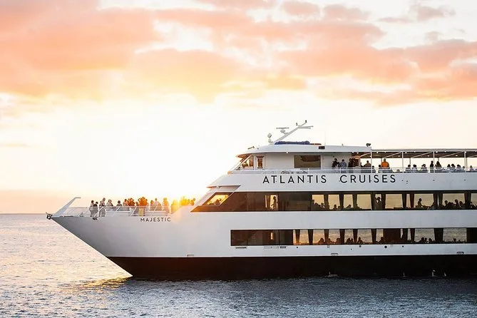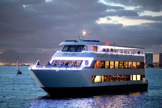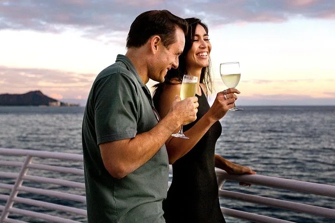 Votre soirée comprend une croisière au coucher du soleil à Waikiki à bord du yacht Majestic avec un verre de bienvenue offert par personne ; profitez des ponts ouverts et des salons climatisés modernes pendant que la musique live rythme votre balade.