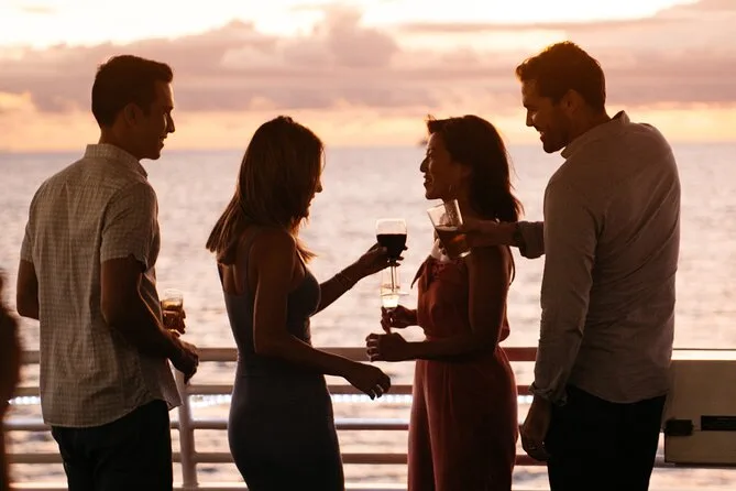 Embarquez à bord du yacht Majestic à Waikiki pour une croisière cocktail au coucher du soleil avec vue sur la ville et un verre de bienvenue offert. Profitez des ponts ouverts et du salon climatisé tandis que la musique live accompagne votre soirée. Que vous soyez dehors à sentir la brise ou au chaud derrière les grandes baies vitrées, cette expérience vous marquera bien au-delà des photos.