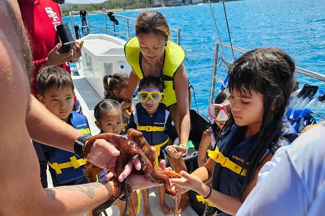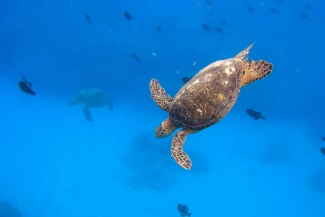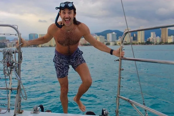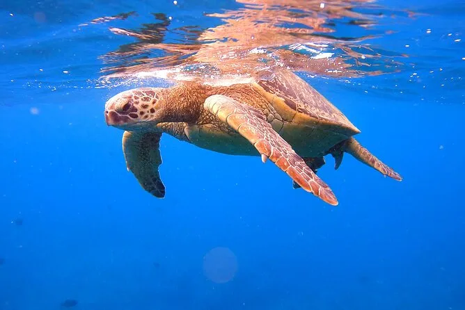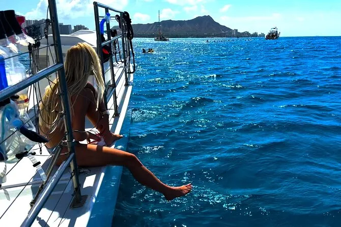 Votre journée comprend une navigation devant Waikiki Beach et Diamond Head avec une équipe locale sympathique, tout le matériel premium de snorkeling et des gilets de flottabilité prêts à Turtle Canyon où les tortues sont garanties, de l’eau en bouteille à bord, un sauveteur dans l’eau pour plus de sécurité pendant la plongée, ainsi qu’une grande glacière remplie de glace pour vos boissons préférées — pensez juste à ne pas prendre de bouteilles en verre.